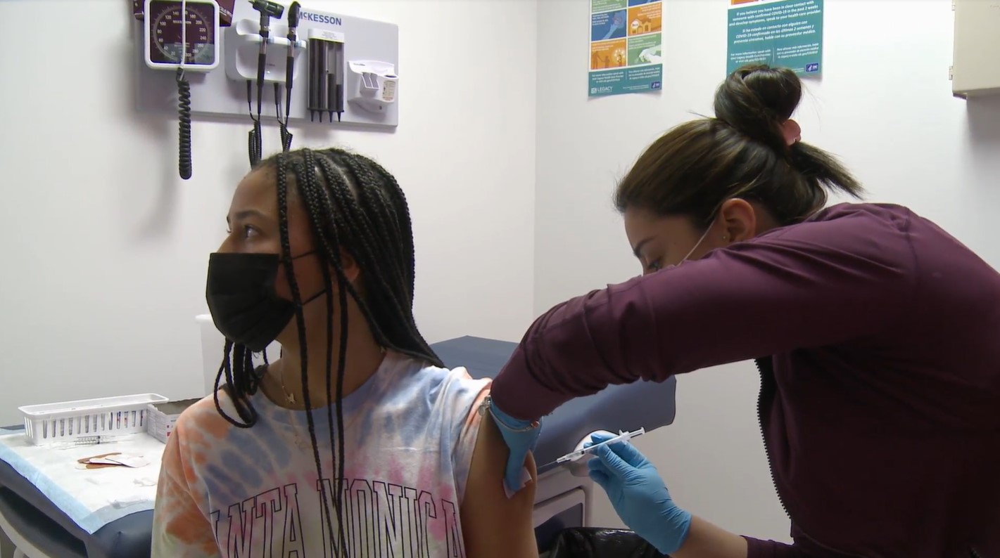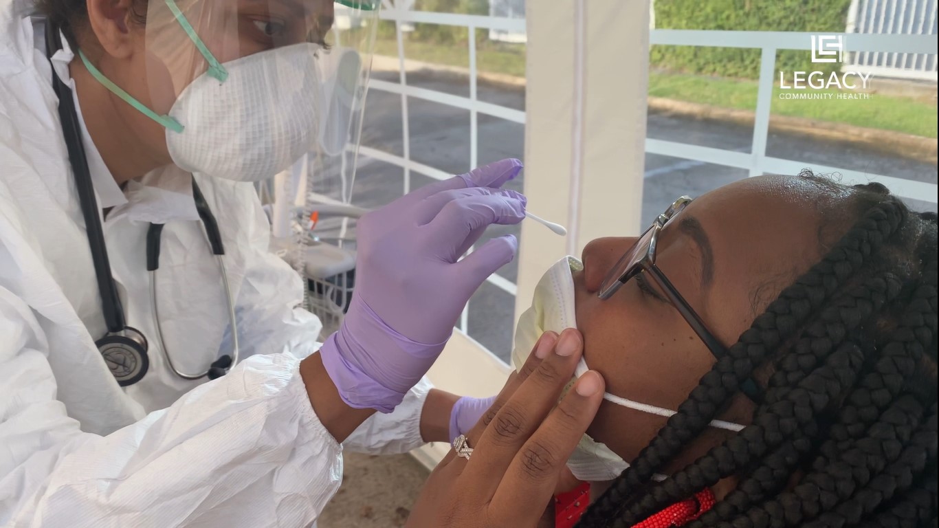 Black female patient is tested for COVID-19 at Legacy Community Health. August 2020.