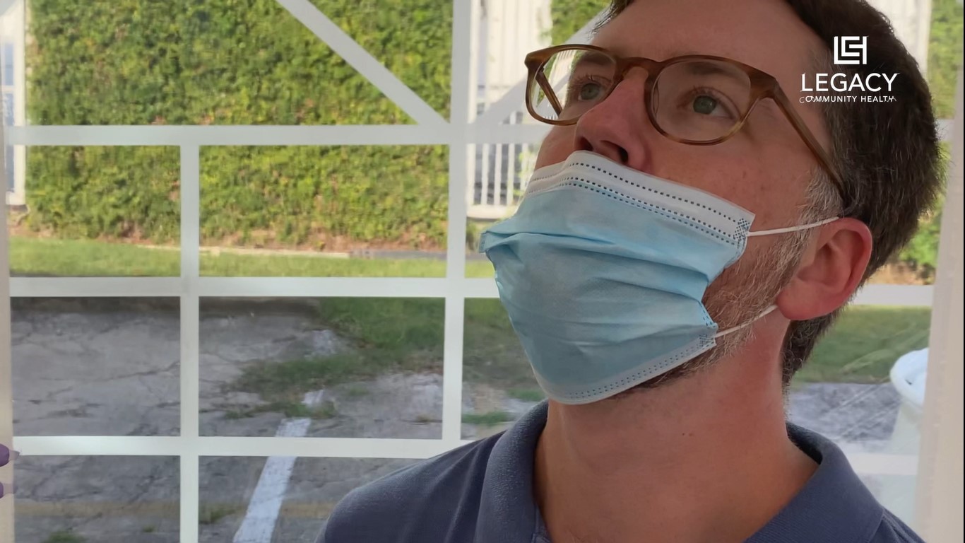 White male patient is tested for COVID-19 at Legacy Community Health. August 2020.