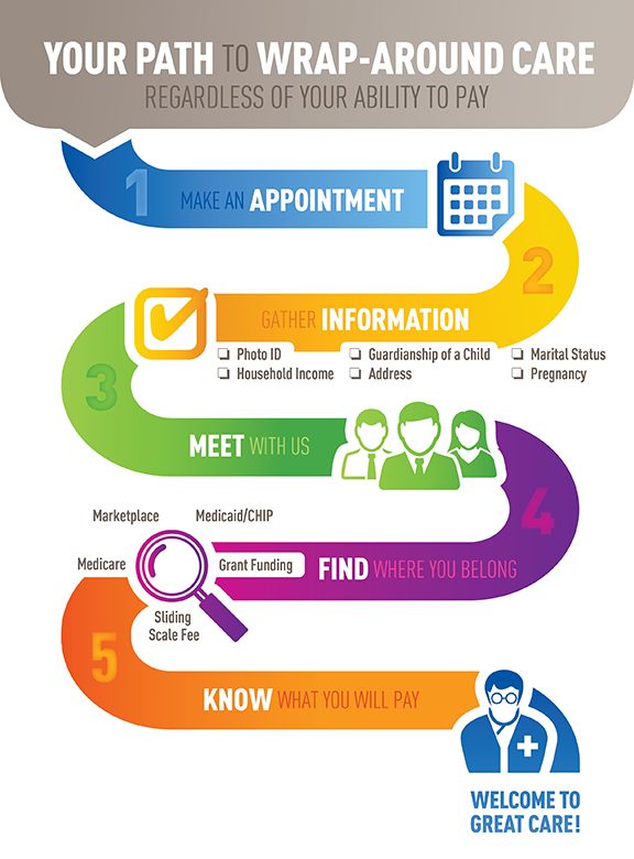 Patients who do not qualify for assistance programs, can receive a medical visit for a lower rate based on income and family size. Sliding Fee Scale is determined through a meeting with a Legacy Eligibility specialist.